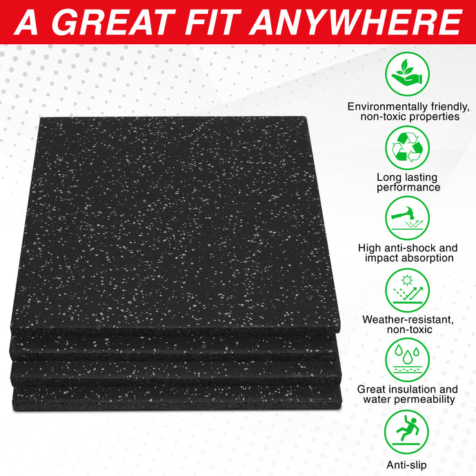 STOZM High Density Rubber Flooring 20”x20” x1”, Set 4 Pcs, 6 Pcs, 8 Pcs